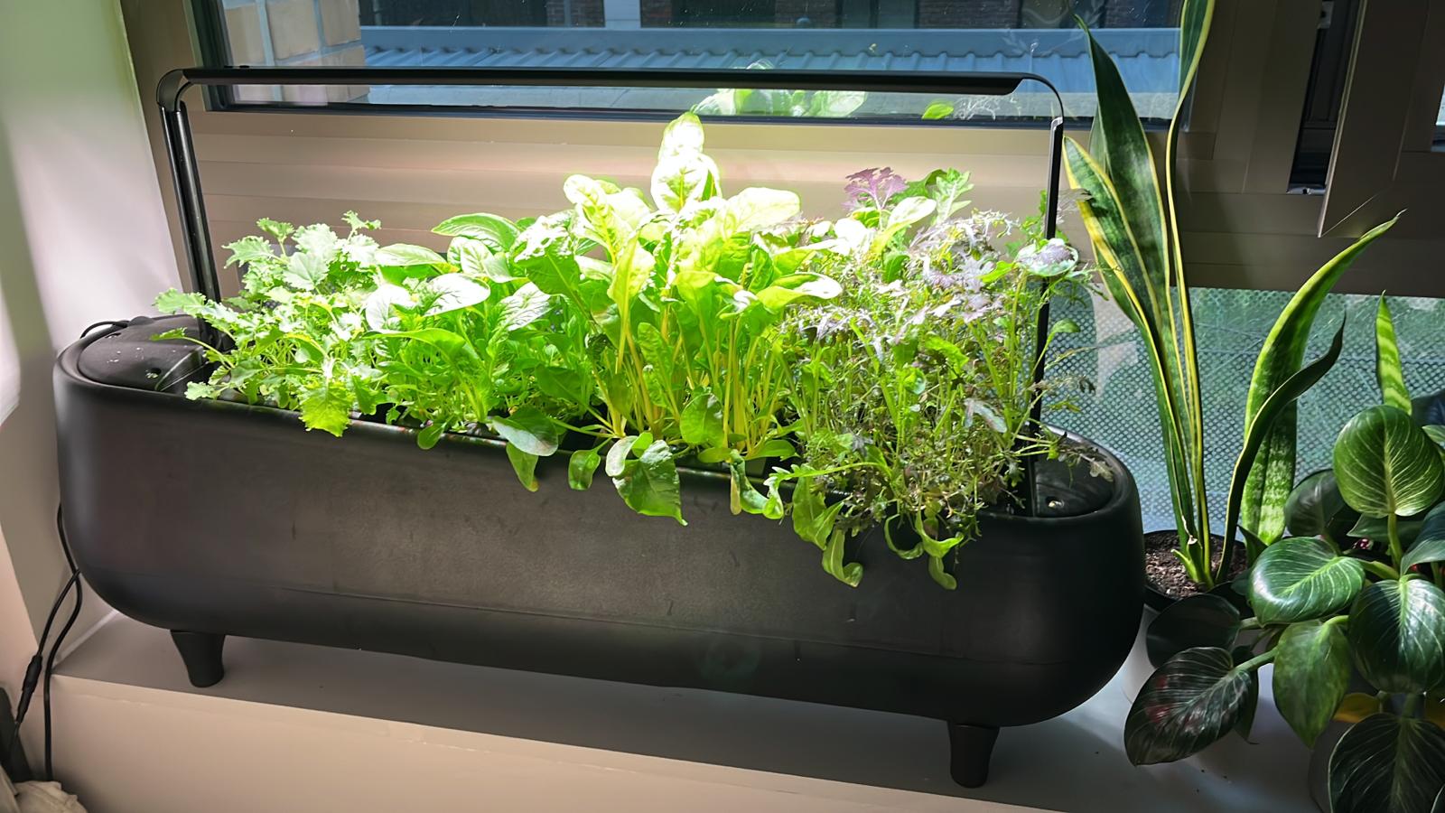 Jasper uses a technology called Nutrient Film Technique. This method conserves water by efficiently recirculating nutrient-rich water, while continuous oxygenation of roots accelerates plant development, yielding quicker harvests in compact spaces.